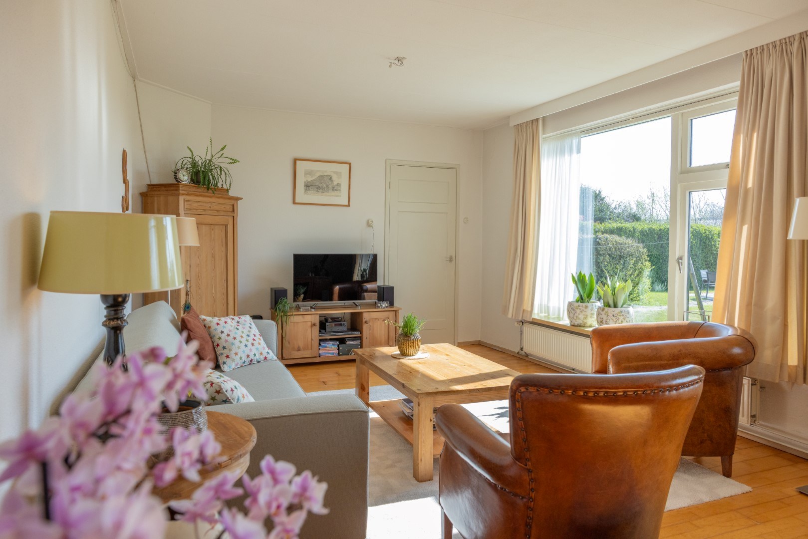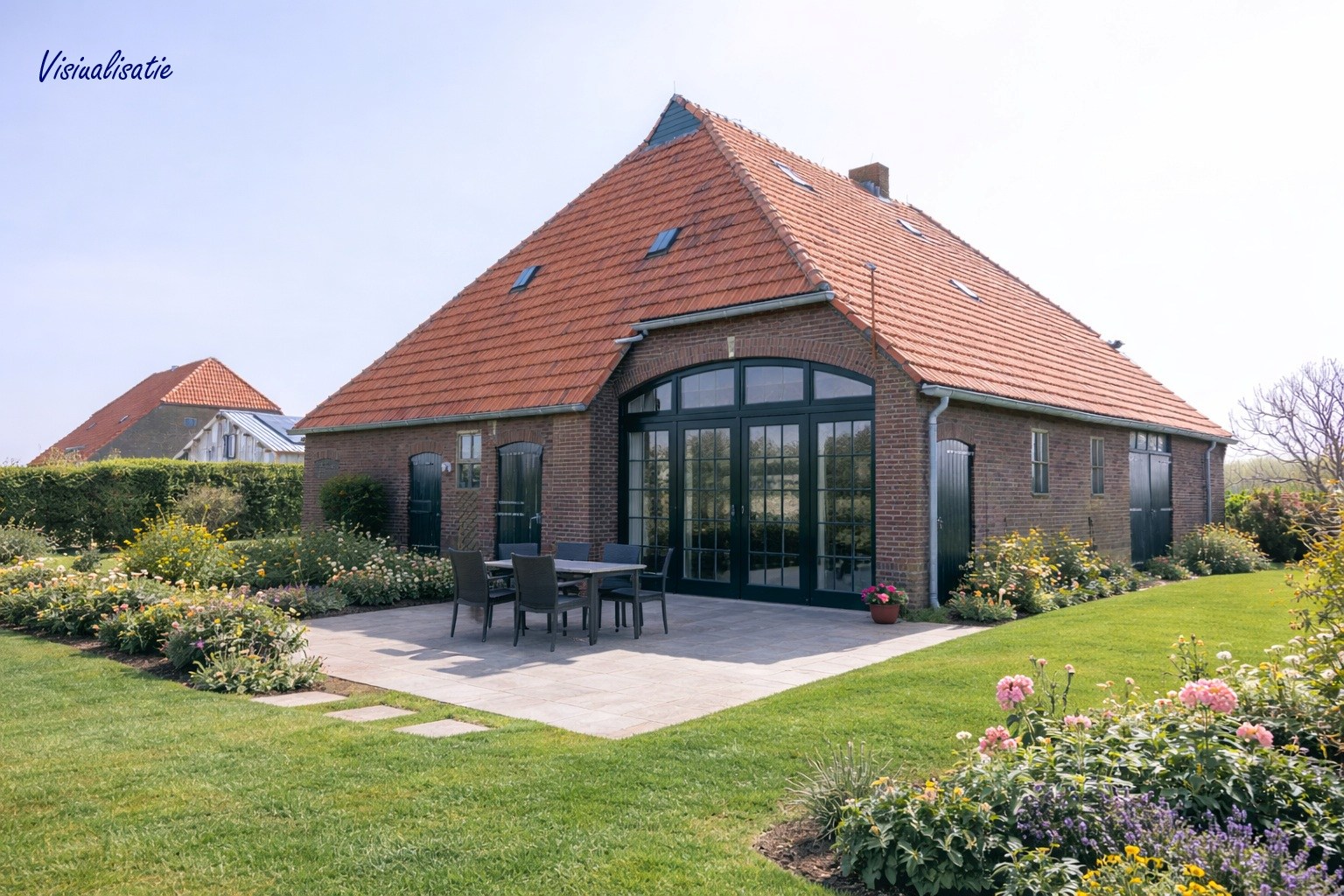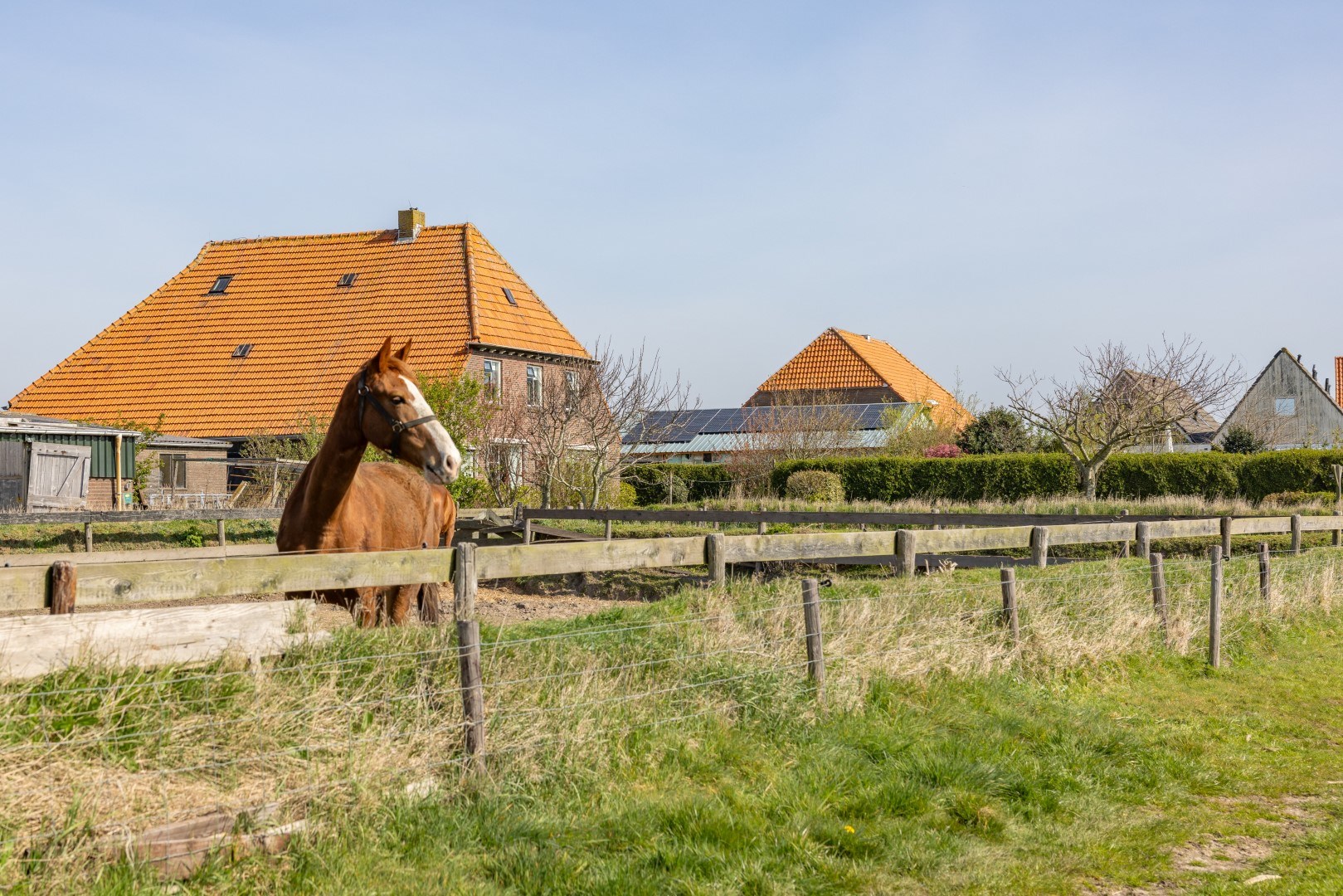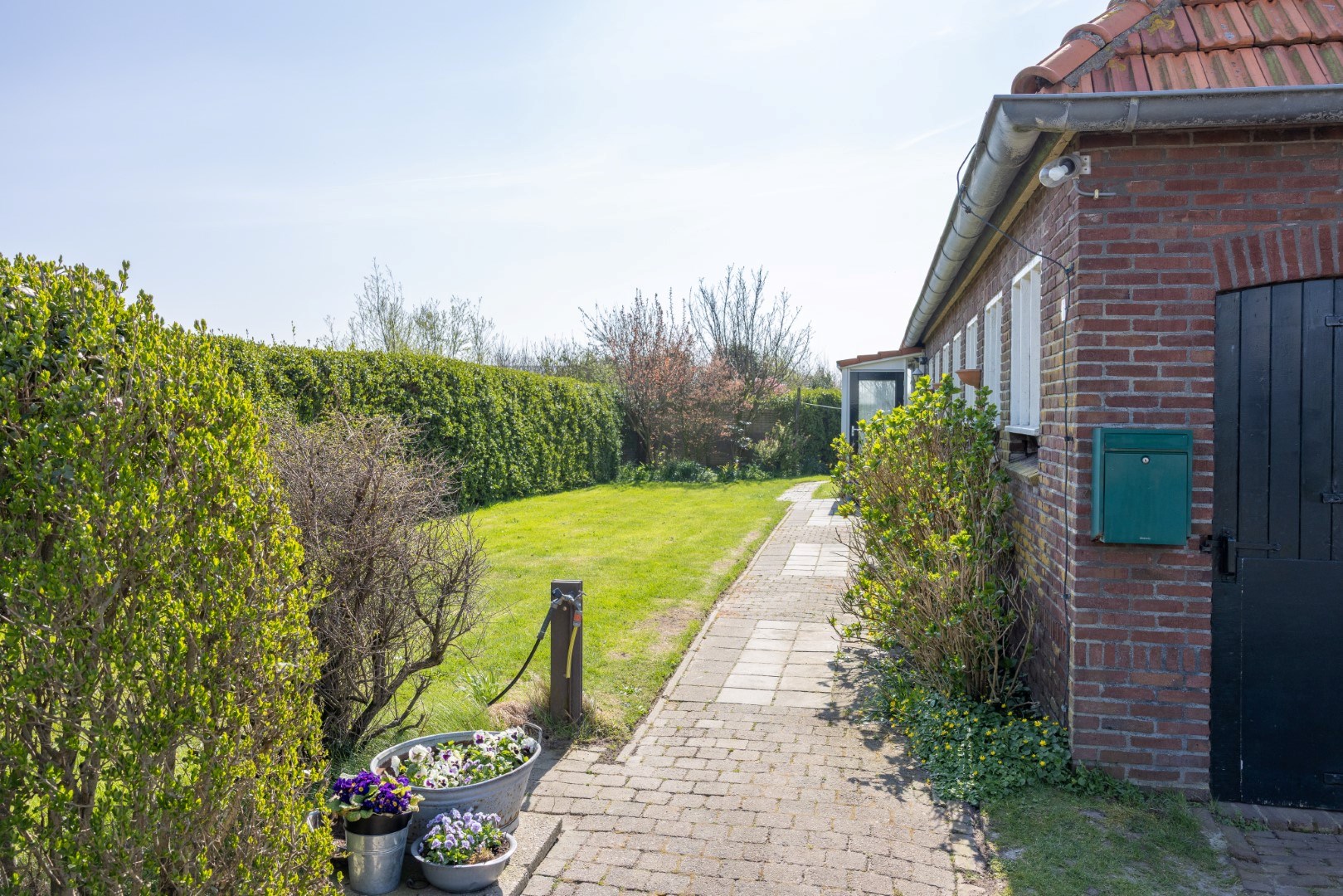 Direct voor de woning een heerlijke tuin met terrassen, bosschages en veel groen. Er is een paardenbak, en weiden die omsloten zijn met de typisch Texelse tuunwallen. Een paradijsje voor de dierenliefhebber.