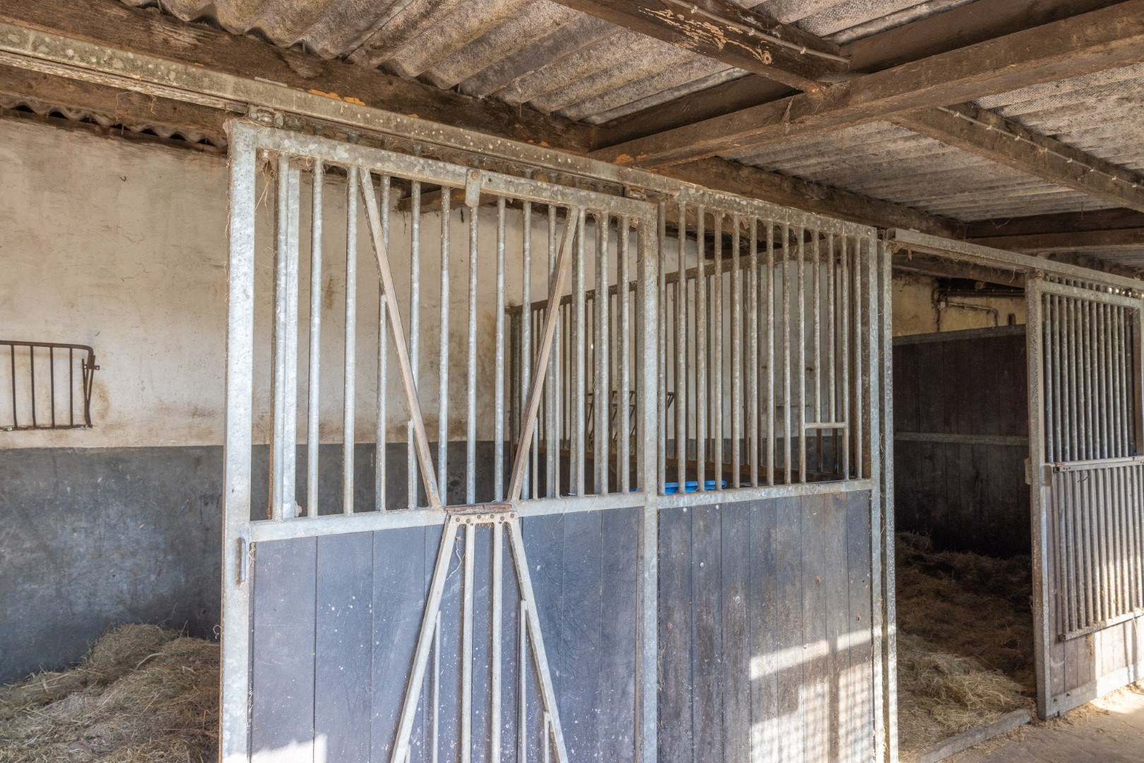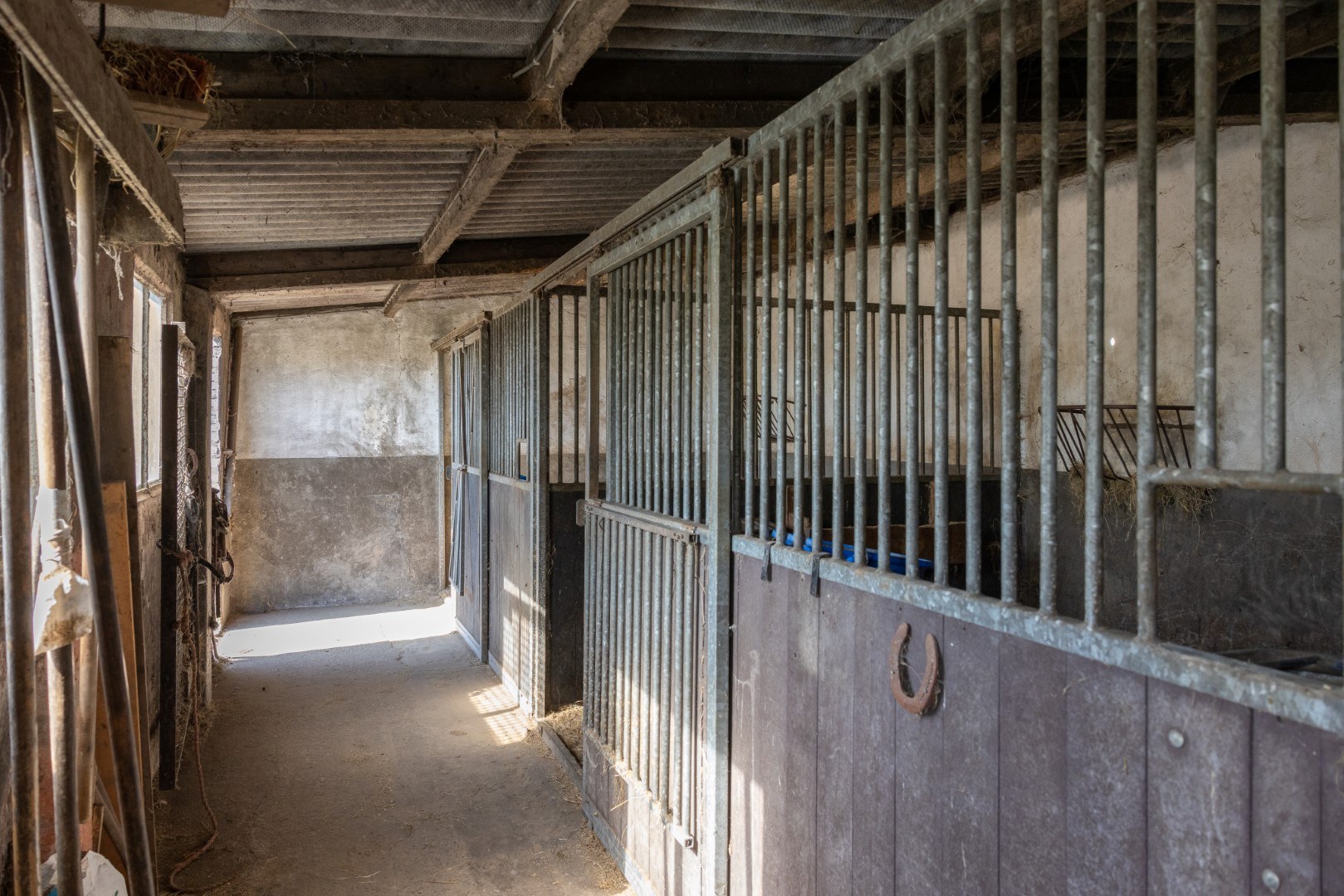 In de half-vrijstaande schuur van ca. 15 x 13 behalve veel ruimte, 2 paardenboxen.